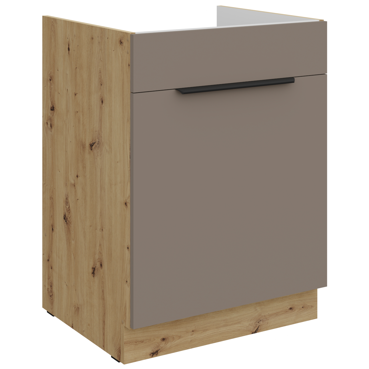 Sink Base Cabinet. Cabinet interior in white colour. Handle holes are drilled as blind holes (not through). |