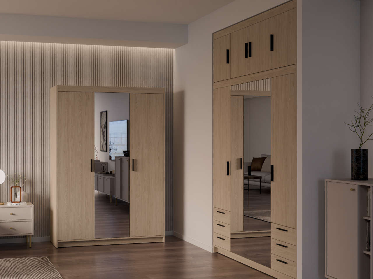 Wardrobe with mirror ELENI 3D oiled oak